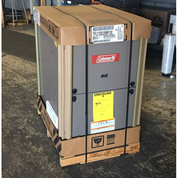 Caldera Coleman de Gas Natural multiposición compatible con comunicaciones de 100.000 BTU, eficiencia: 80%, voltios: 220v, hercios: 50, fase: 1, CFM: 2000, etapa: simple, velocidad: variable, tipo de motor: ECM, entrada BTU: 100.000, salida BTU:dimensiones: 33 H X 21 W X 29-1/2 D, peso: 129 libras, en caja Mfg, hecho en EE. UU.