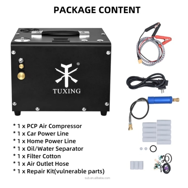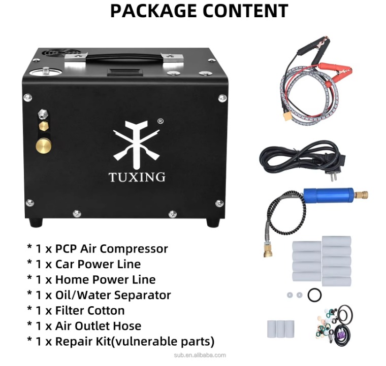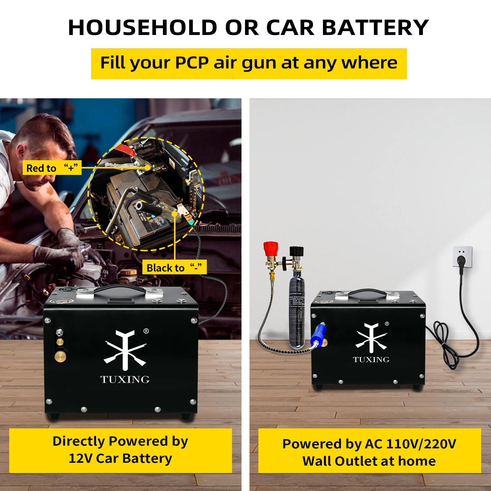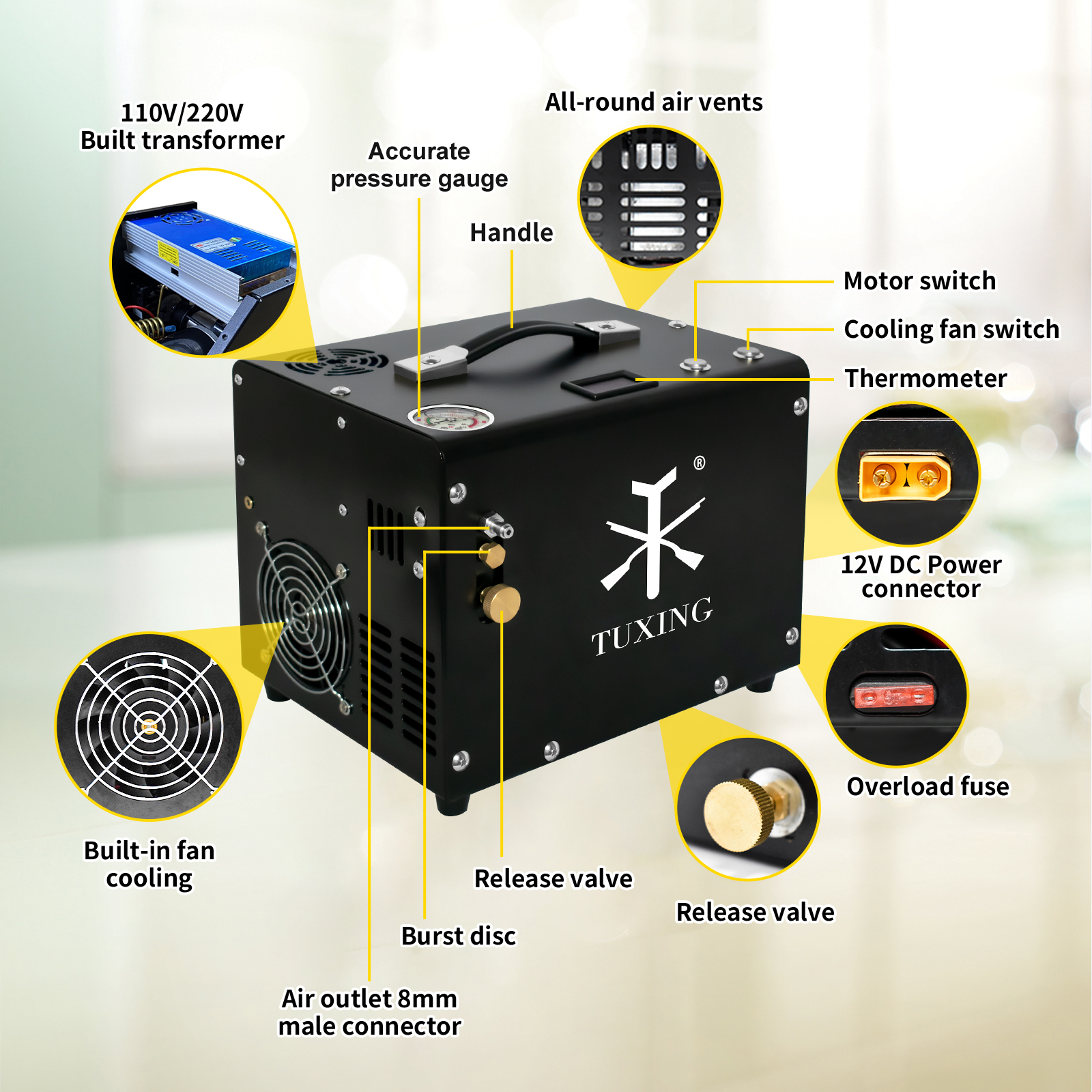 InicioTienda SolargasArmas de Aire Comprimido PCPCompresor Portátil TUXING 12V 110V 220V 300bar 4500PSI Parada Automática,Compresor PCP
