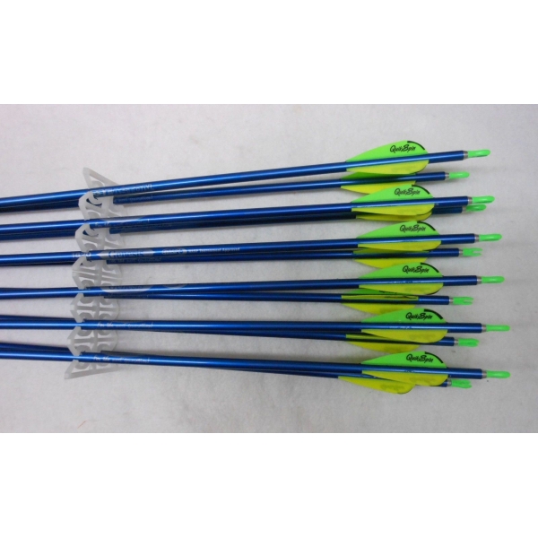 Easton Aluminum 1820 Genesis Youth Arrow Shafts Fletched with 2.8″ vanes and Unibushings with «N» nocks and POINTS installed at 30″. Ready to shoot. The only arrow approved by NASP for tournament use. Exceeds specifications of other Genesis arrows.