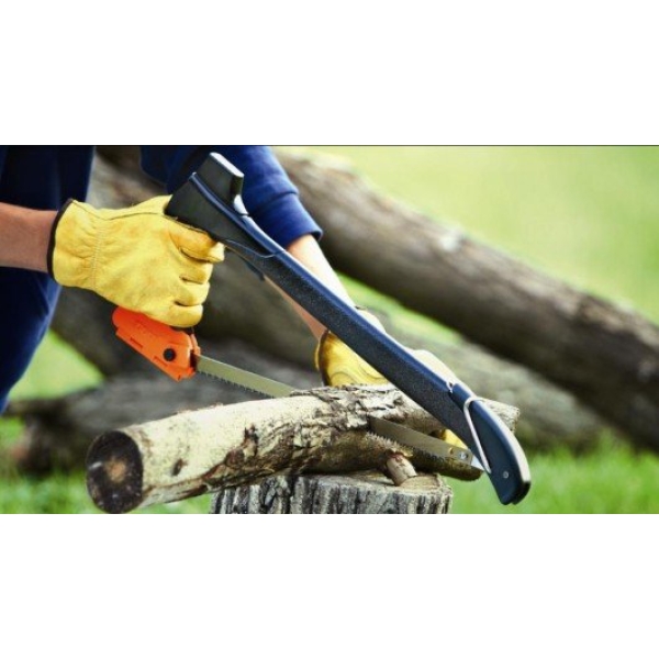 El 4-en-1 Woodsman ™ convierte a un hacha y un arco de sierra para ayudar a reducir su camino a través de una selva de maleza y ramas duras rápidas. Un mazo y juego tirador le ayuda a establecer un pop-up ciego y llevarlo hacia abajo con facilidad. Llevar este producto a su campamento y tener un mazo, un extractor de juego, un 15 «arco de sierra que corta el roble hasta 4» de diámetro, y un hacha con una hoja de 5 «. Diga que es una herramienta muy útil para acampar o una herramienta de supervivencia, hay una herramienta que le da más capacidad para el peso o el dinero.