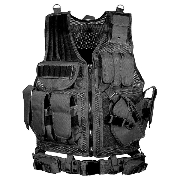 - 1 cross-draw pistol holster (integrated onto vest for easy access)